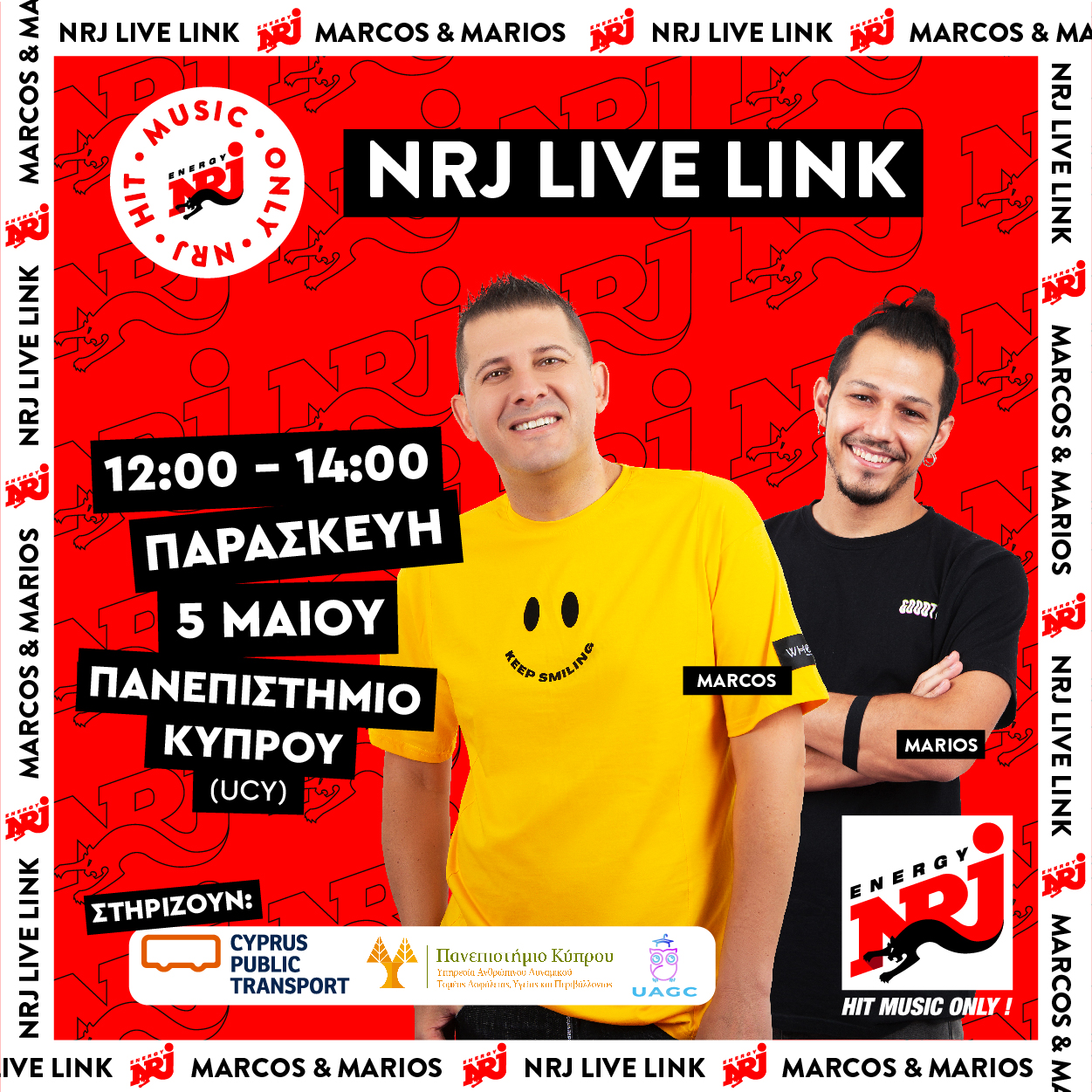 GIVEAWAY 🌟 NRJ LIVE LINK την Παρασκευή, 5 Μαΐου στο Πανεπιστήμιο Κύπρου από τις 12:00 μέχρι τις 14:00 για ενημέρωση των φοιτητών, για τους τρόπους μεταφοράς στα πανεπιστήμια με τις Δημόσιες Συγκοινωνίες.